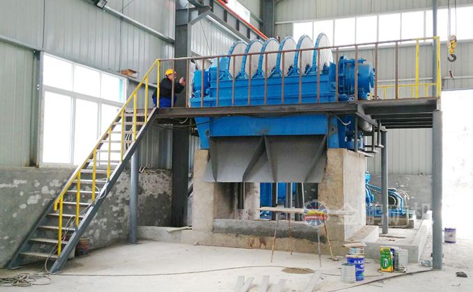 6、在精礦堆場附近安裝盤式過濾機,精礦水分小于15%;利用選廠地形條件,將精礦自流到過濾機,實現遠程放礦自動化控制,成功的解決了精礦粉倒運成本高的問題。