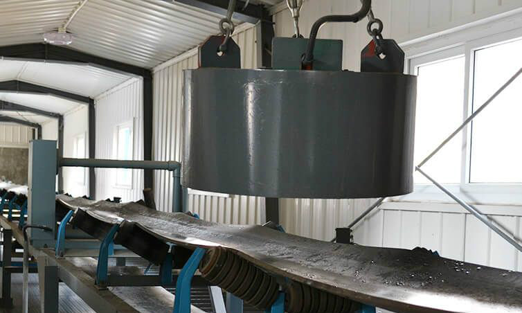 在金礦、石墨礦、螢石礦選礦工藝流程中,會看到在顎式破碎機處理完大塊礦石之后,為圓錐破碎機給料之前,需要經過電磁除鐵器處理和金屬探測儀的檢測。