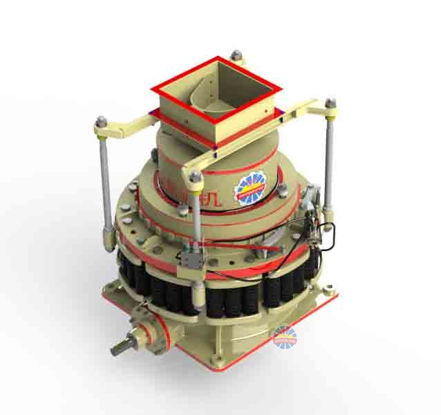 4.動(dòng)錐和定錐都是正置,動(dòng)錐擺動(dòng)時(shí),在破碎腔出料口附近,動(dòng)錐與定錐之間有一段間隙相等的平行帶,使成品料度均勻,進(jìn)料口尺寸不大,能夠處理的都是經(jīng)過初次破碎的物料;