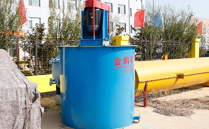 該礦用攪拌桶工作時,在葉輪的旋轉作用下,礦漿和藥劑產生大、小循環(huán)運動,從而使整個槽內的礦漿、藥劑達到均勻混合,混勻的懸浮液由溢流口排除。